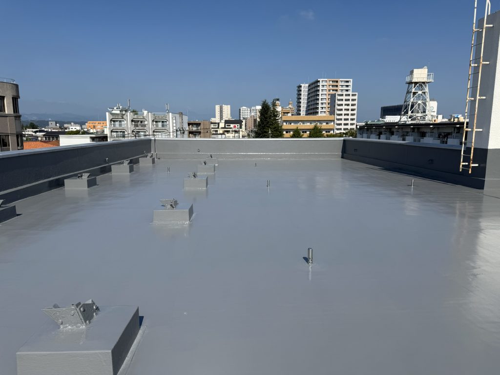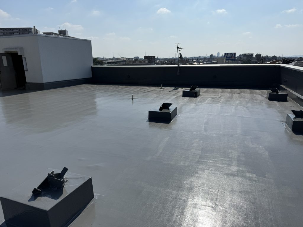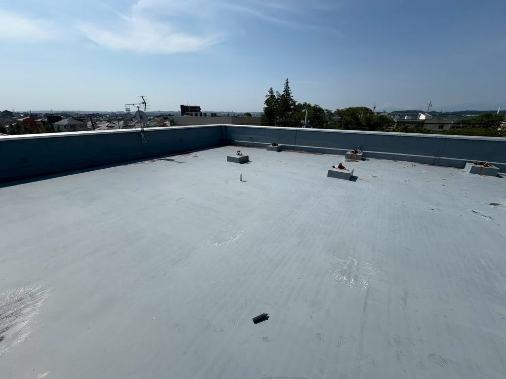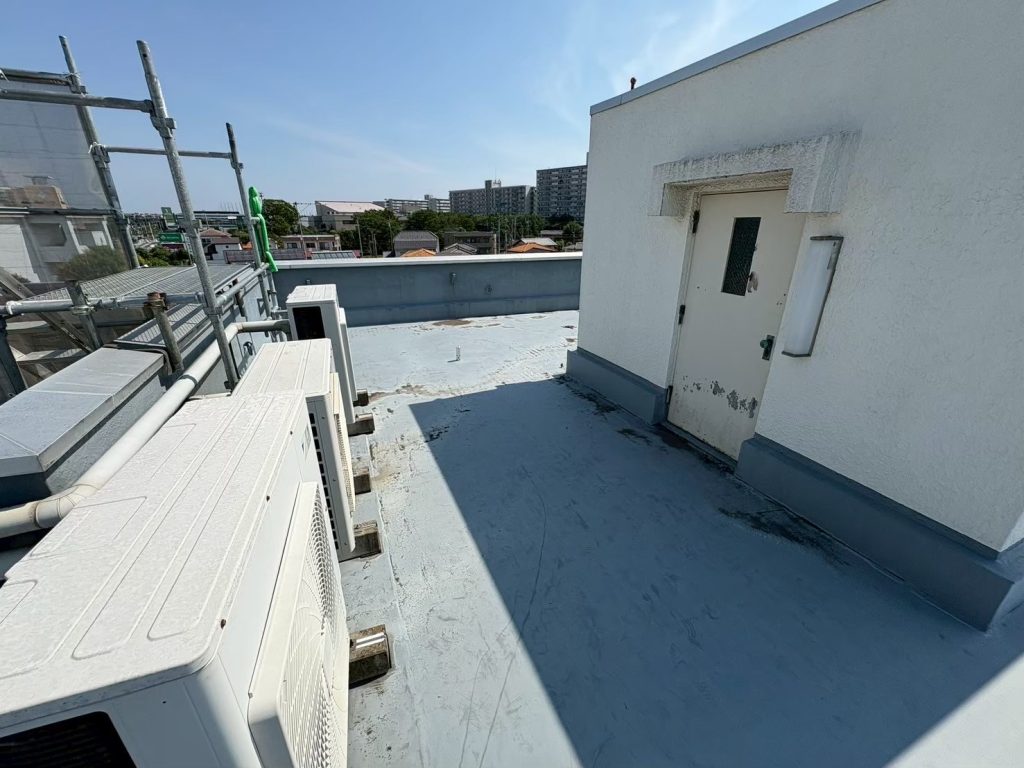 | 以前施工させていただいたお客様より、10年以上が経過したとのことで再度のご依頼をいただきました。 既存の防水層はウレタン塗膜防水でしたので、基本的にはウレタン塗膜防水の重ね塗りで対応しました。ただし、一部の壁面ではひび割れから雨水が浸入していたため、既存防水層を撤去し、入念な下地処理を行った上で施工を実施しました。 【施工時期】 2025年8月 【施工部位および工事】 屋上防水工事 |